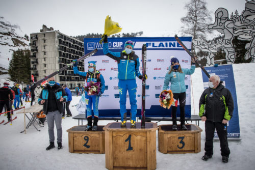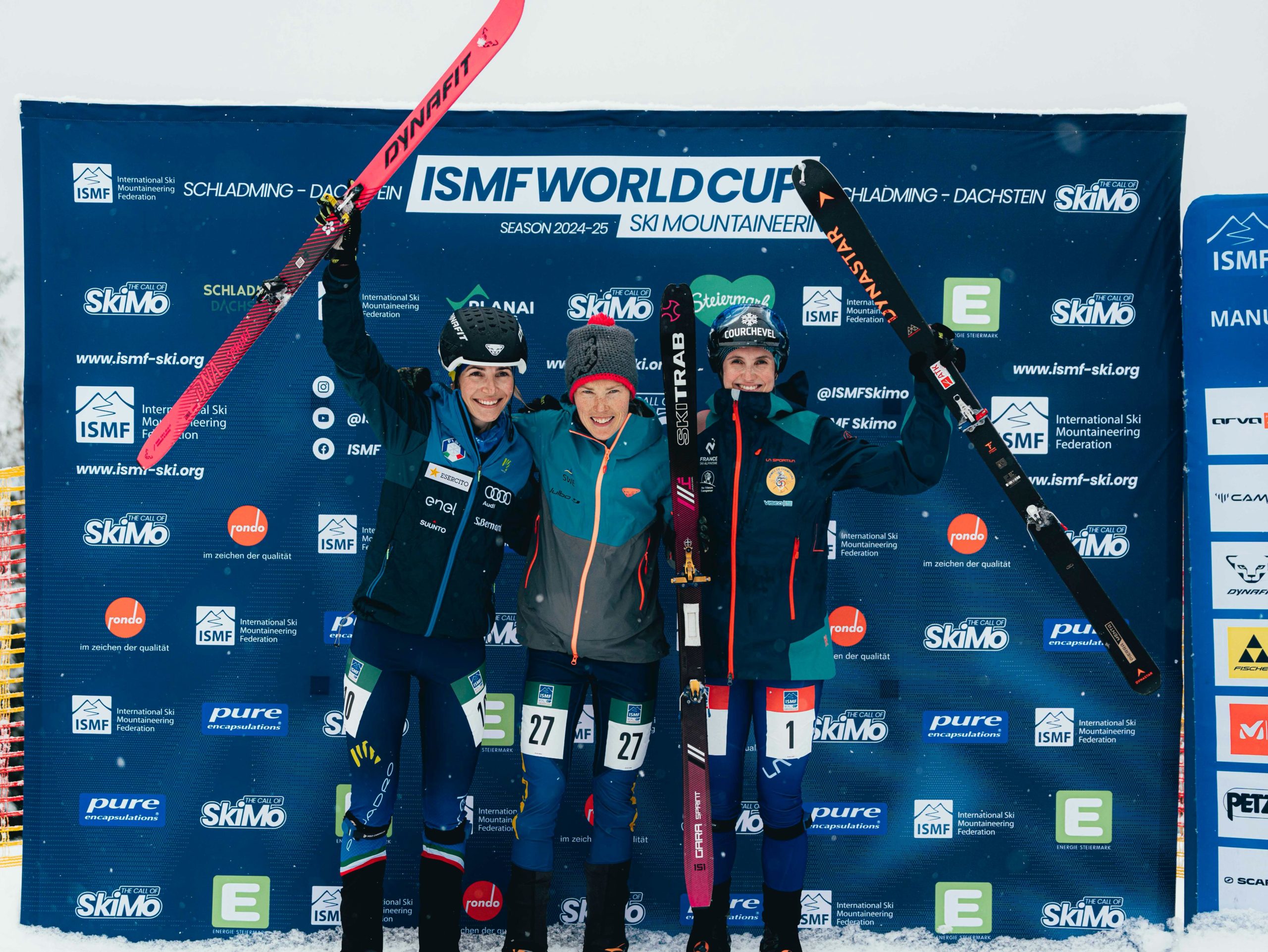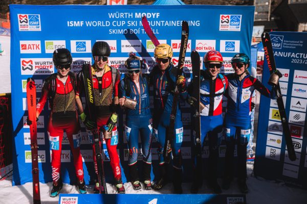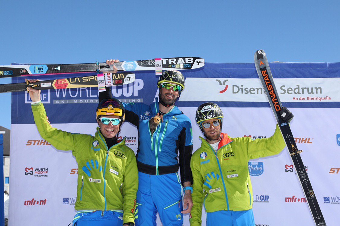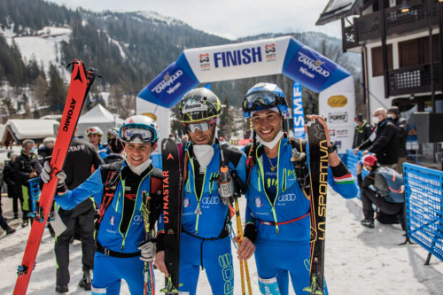 The podium of first ISMF Series race of the season exclusively showed Italian light-blue colours. The first winner for men’s race was Robert Antonioli, king of the slopes, followed by Michele
