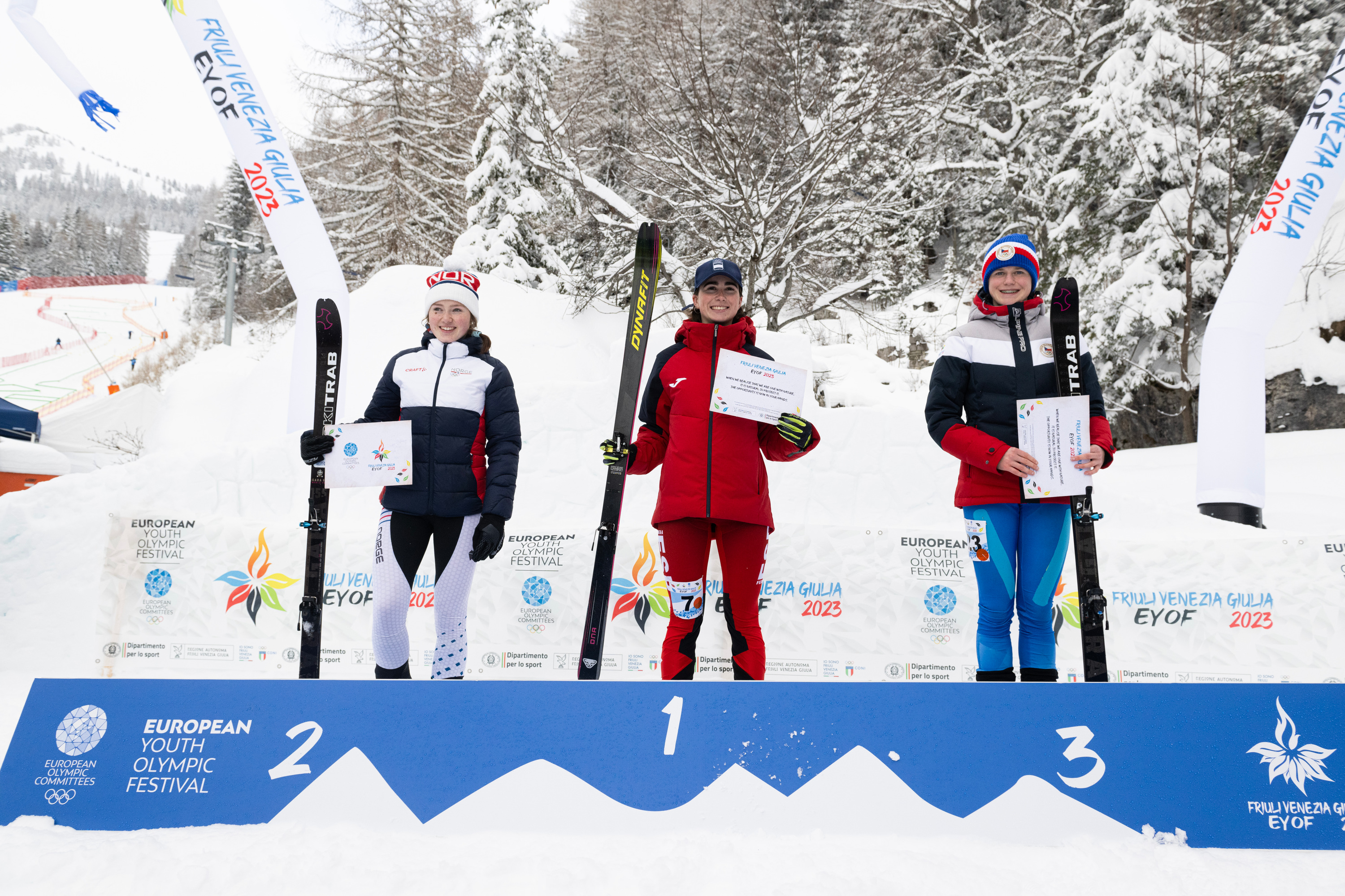 For the first time in the World Cup Sprint race history, three women from one country finished on the podium: Emily Harrop, Léna Bonet and Célia Perillat-Pessey.